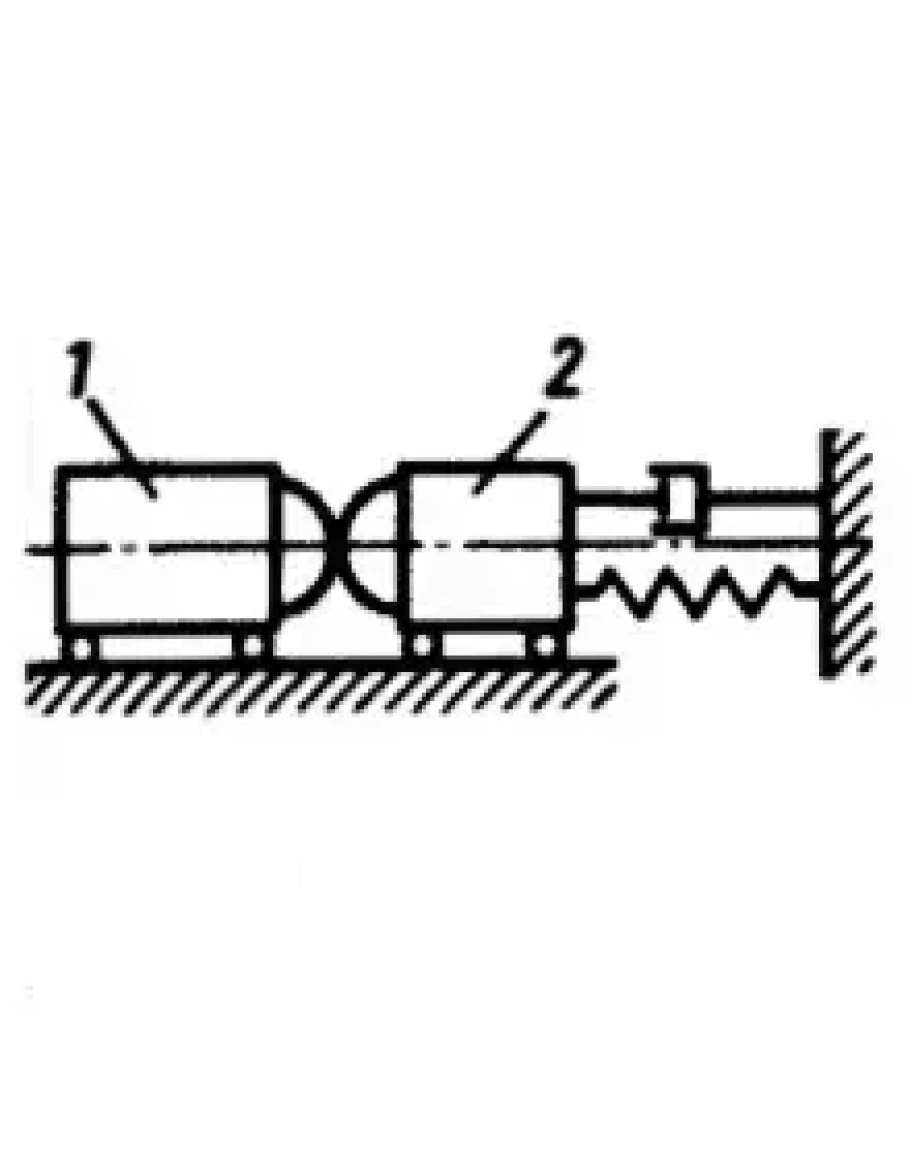 Тело 1 массой m1 = 5 кг ударяет по неподвижному амортизатору 2 массой m2.