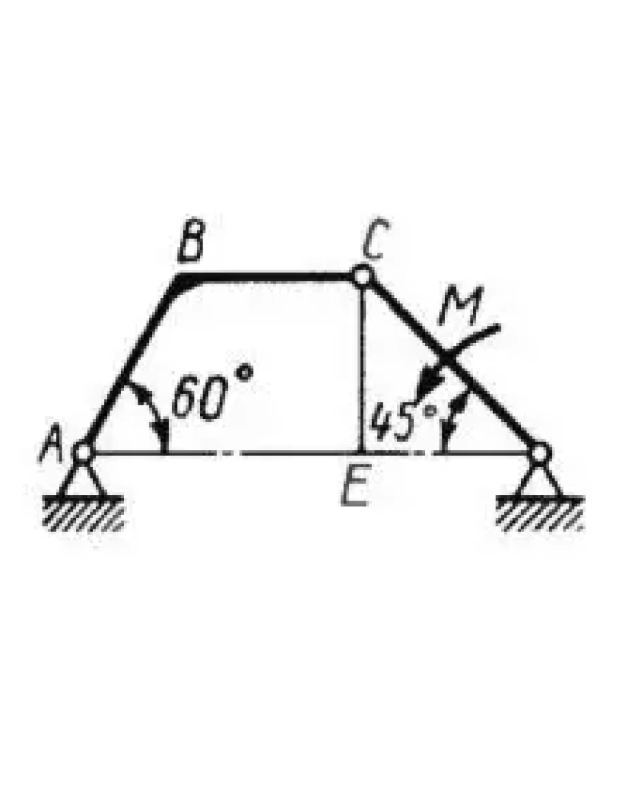 Определить в кН·м момент М пары сил, при котором вертикальная составляющая реакции опоры А равна 10 кН, если размеры ВС = СЕ = 1 м. (Ответ 25,8)