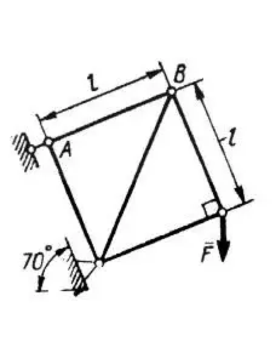 Определить усилие в стержне АВ. Сила F = 500H (Ответ 470)