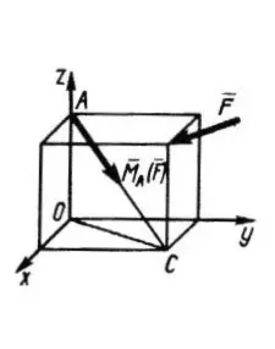 Момент силы F относительно точки А по модулю равен МА (F) = 50 Нм и направлен по диагонали АС параллелепипеда. Определить момент этой силы относительно оси Oz, если ОА = 0,3 м и АС = 0,5 м. (Ответ 30)