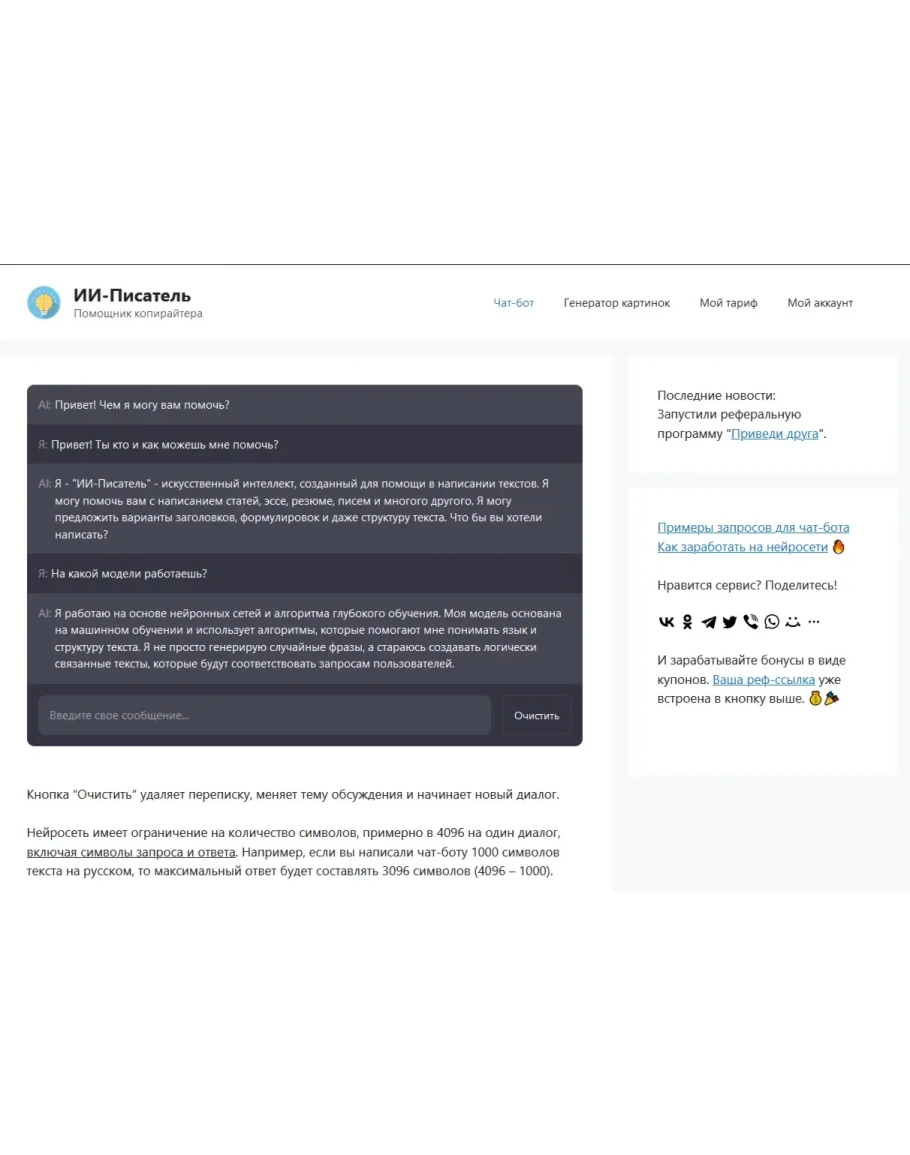 3. Создание текстов на различные темы, включая новости, статьи, рассказы и т.д.