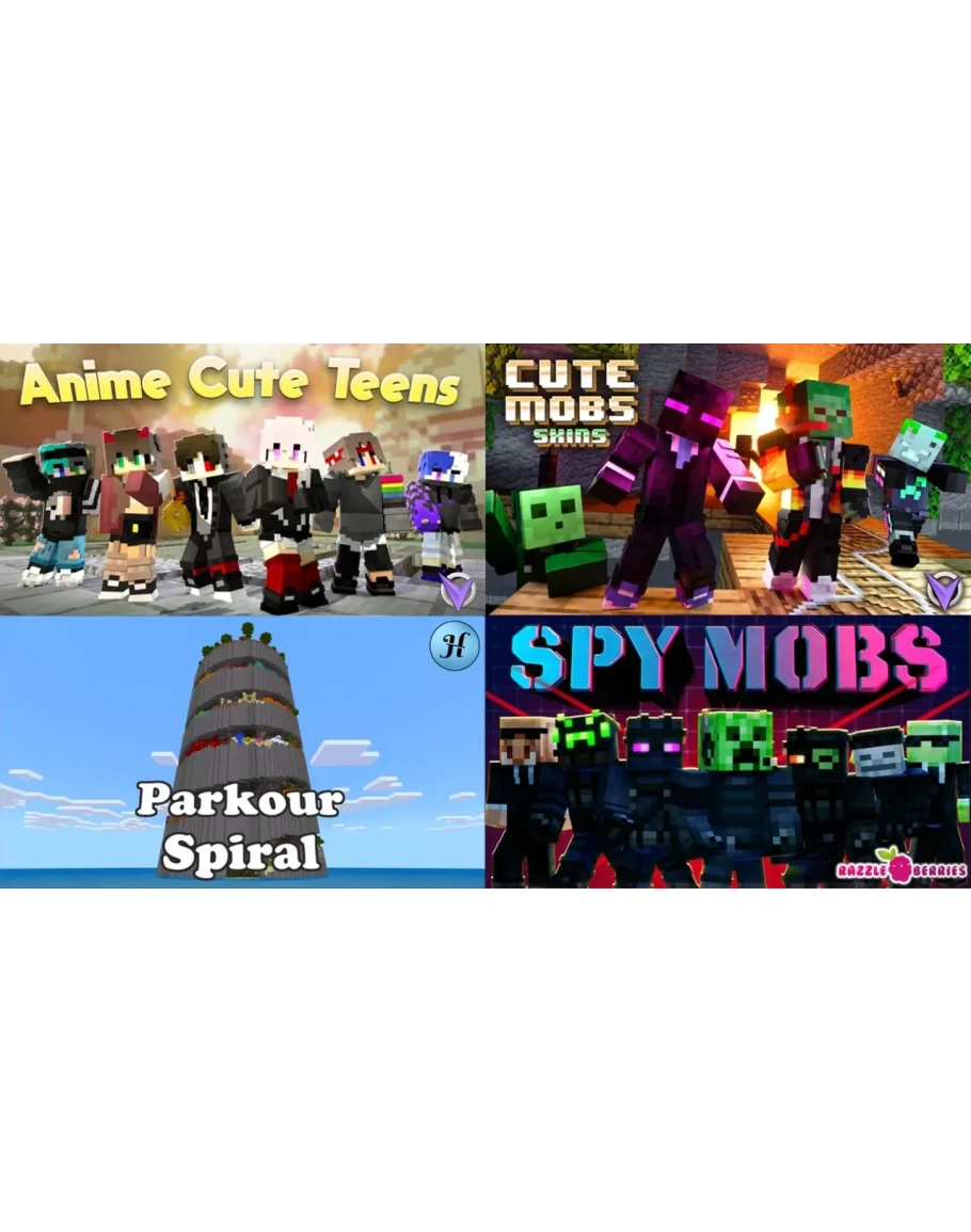 1600 майнкоинов, пять карт (Skyblock One Block, Hacker Tools, Pets Collection, Parkour Spiral и Original Bed Wars), три набора скинов (Spy Mobs, Cute Anime Teens и Cute Mob Skins), один набор текстур (Clarity), пять предметов в Создателе персонажей и три эмоции.