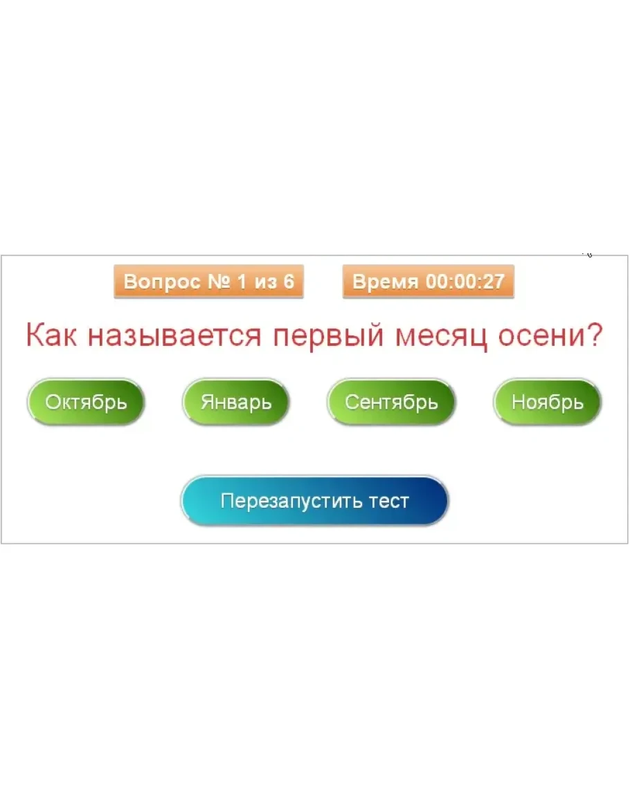 ["Как называется первый месяц осени?","Октябрь","Январь","Сентябрь","Ноябрь",3],