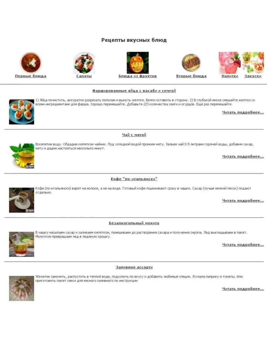 Наполненный модуль "Рецепты блюд". В базе более 200 страниц.