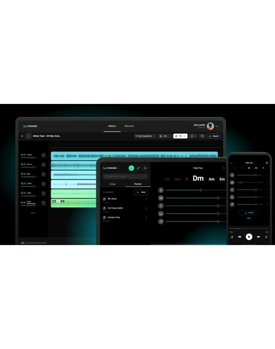 Moises — приложение для музыкантов, которое позволяет управлять любой песней. С помощью искусственного интеллекта пользователи могут разделять вокал и инструменты, изменять скорость и тональность композиции, а также использовать умный метроном и распознавание аккордов.