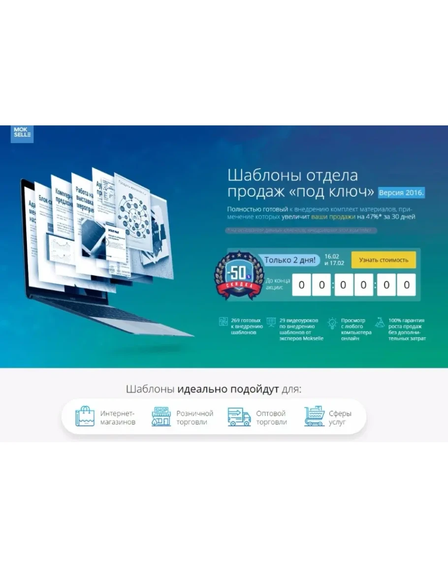 Полностью готовый к внедрению комплект материалов, при которых увеличит ваша продаже на 47% за 30 дней.