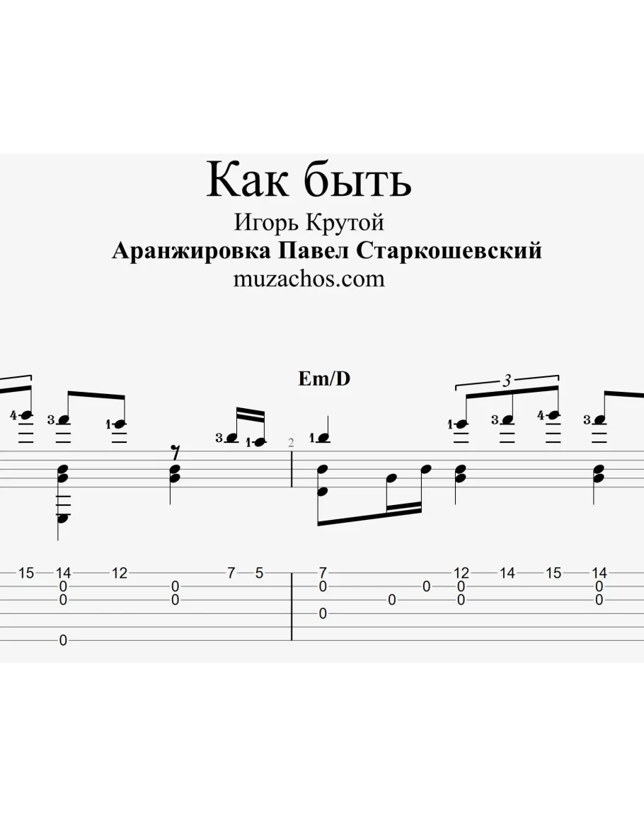 Ноты для одной гитары с аппликатурой левой руки и табулатура к переложению песни А. Серова — Как быть из к/ф «Слово пацана». Форматы: pdf, guitar pro 6 и 7