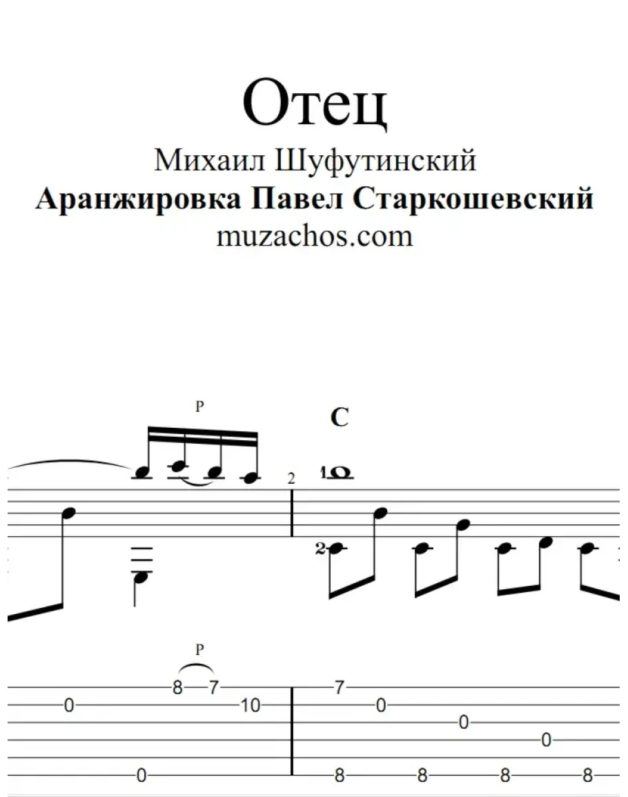 Ноты для одной гитары с аппликатурой левой руки и табы к переложению песни М.Шуфутинского "Отец".