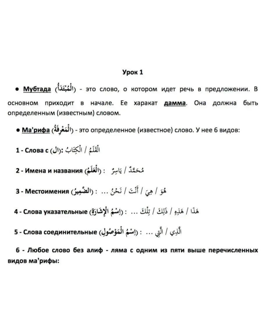 В данном издании более подробно рассмотрены арабские грамматические термины и правила на русском языке с примерами. Очень полезна будет для тех кто изучает Мединский курс вместе с ШАРХОМ на Арабском языке.