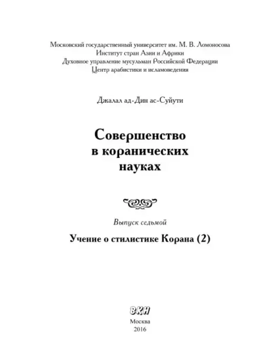 Название: Совершенство в коранических науках (Аль- Иткан фи улюм Аль-Куръан). Выпуск 7. Учение о стилистике Корана (2)