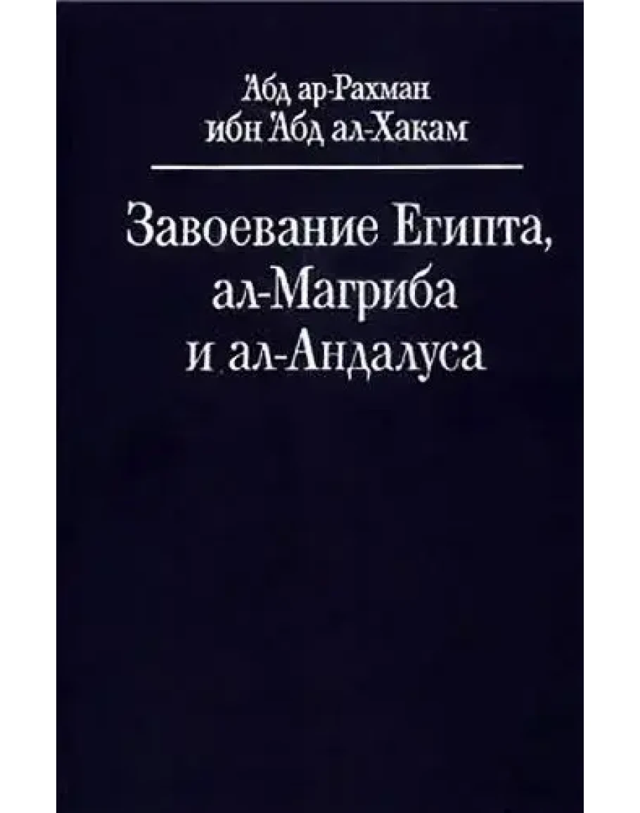 "Завоевание Египта, Аль-Магриба и Аль-Андалуса" Абд ар-Рахмана ибн Абд аль-Хакама - один из самых ранних из дошедших до нас памятников арабской исторической литературы. В нем освещены завоевания Египта арабами и первые десятилетия их правления там, а также ведшиеся оттуда завоевания Северной Африки и Пиренейского полуострова.