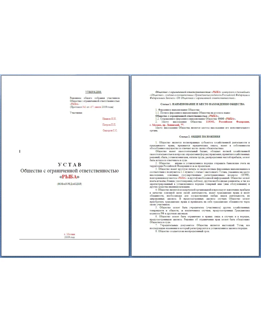 Образец нового Устава ООО согласно нового закона 312-ФЗ