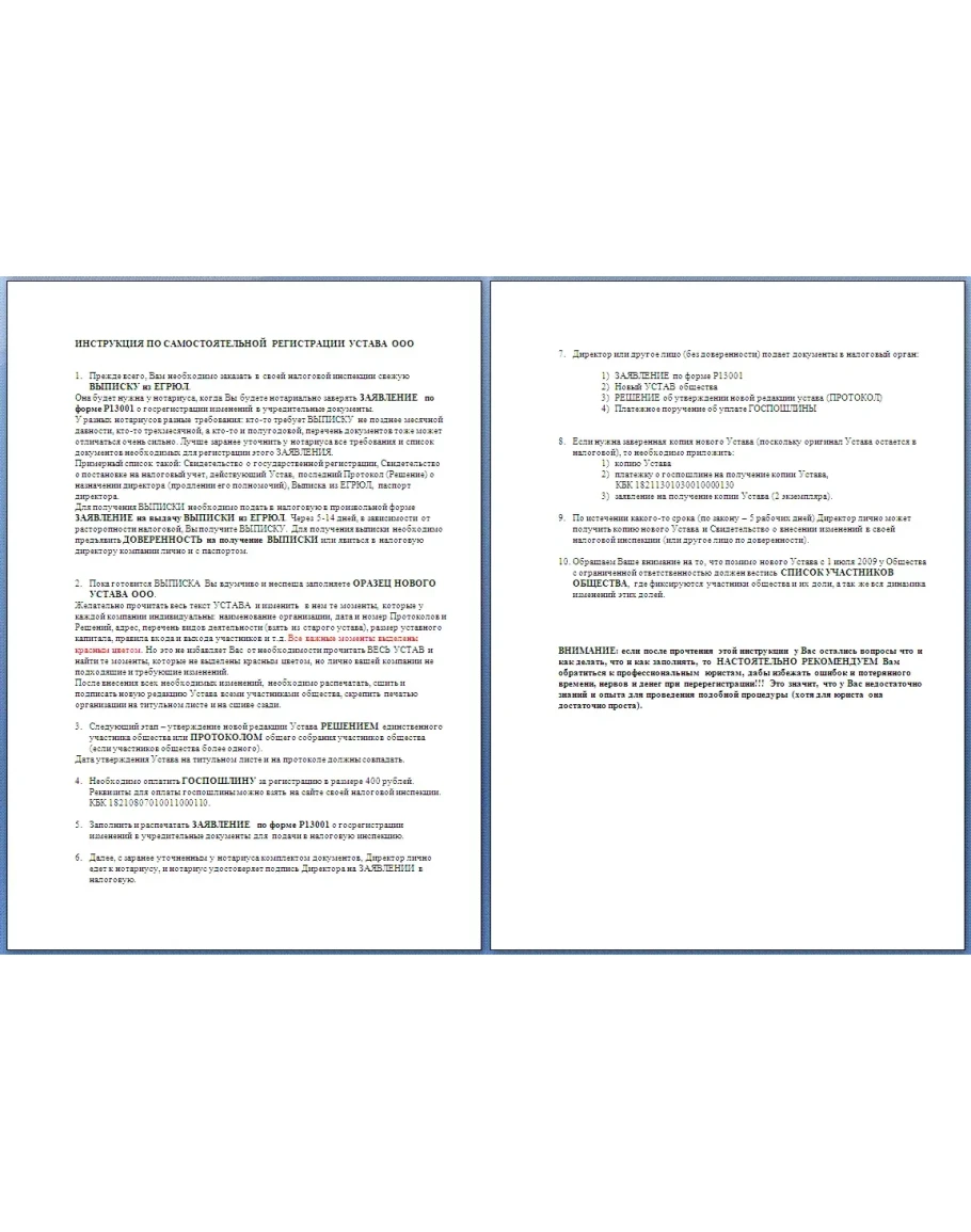 Если Вы ищите образец нового Устава ООО, то предлагаем Вам следующий вариант: Вы покупаете образец нового Устава ООО, разработанный юристами в соответствии с новыми законами 312-ФЗ и 205-ФЗ, самостоятельно вносите в него свои данные, и затем регистрируете его в своей налоговой инспекции, используя подробную пошаговую инструкцию, приведенную в конце Устава. Устав содержит 18 страниц и полностью отвечает требованиям новых законов. Данные которые необходимо изменить выделены красным цветом.