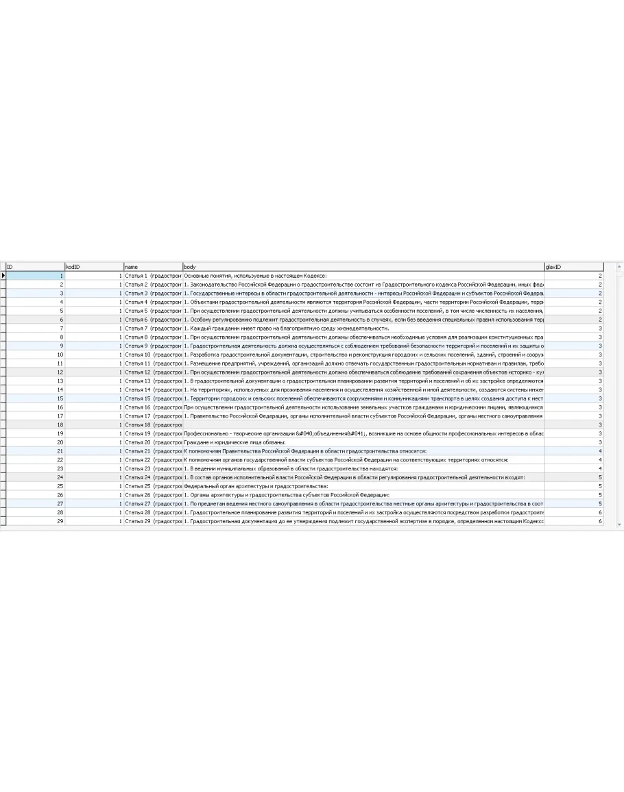 База данных кодексов, законов, комментариев. В ней представлены следующие кодексы: