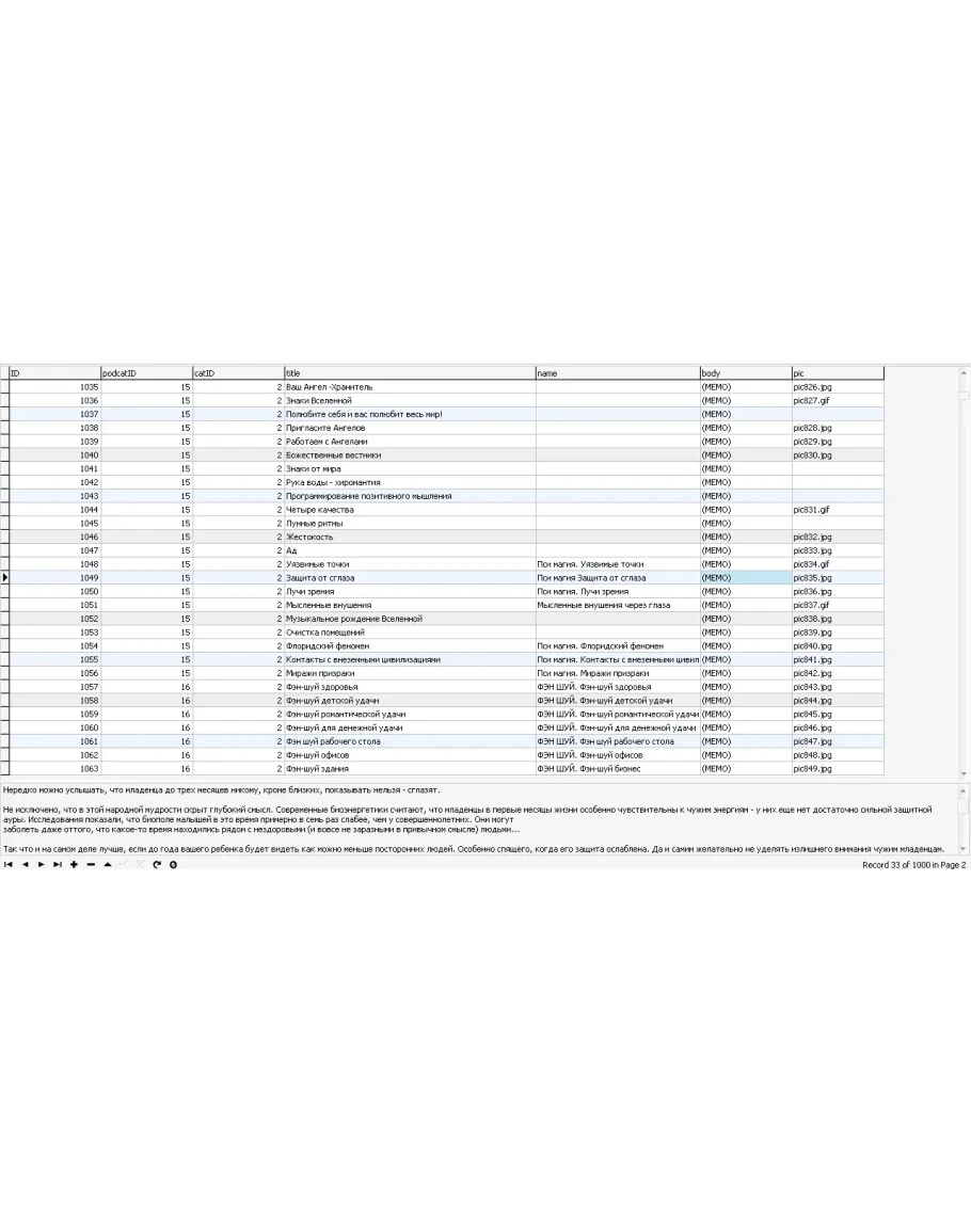 База данных эзотерического портала, в которой собраны статьи и рассказы по следующим разделам: