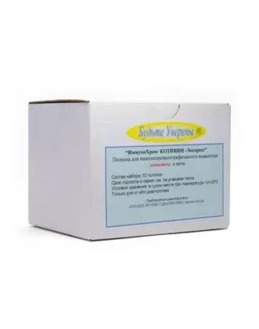 Экспресс тест «ИммуноХром-Котинин-Экспресс» предназначен для одноэтапного быстрого качественного определения котинина (метаболитов никотина) в моче методом иммунохроматографического анализа.