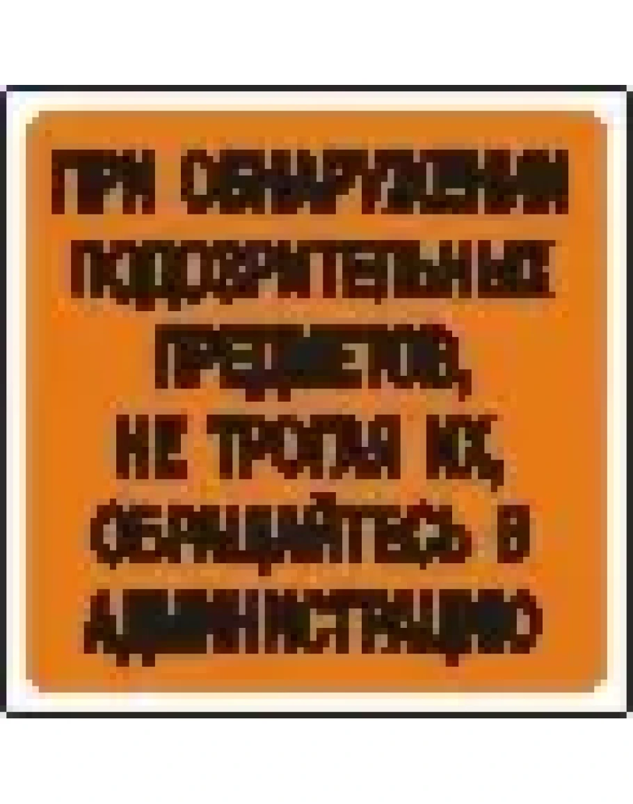 Наклейка. "При обнаружении подозрительных предметов, не трогая их, обращайтесь в администрацию", цветная, размер 10х10 см, формат .cdr.