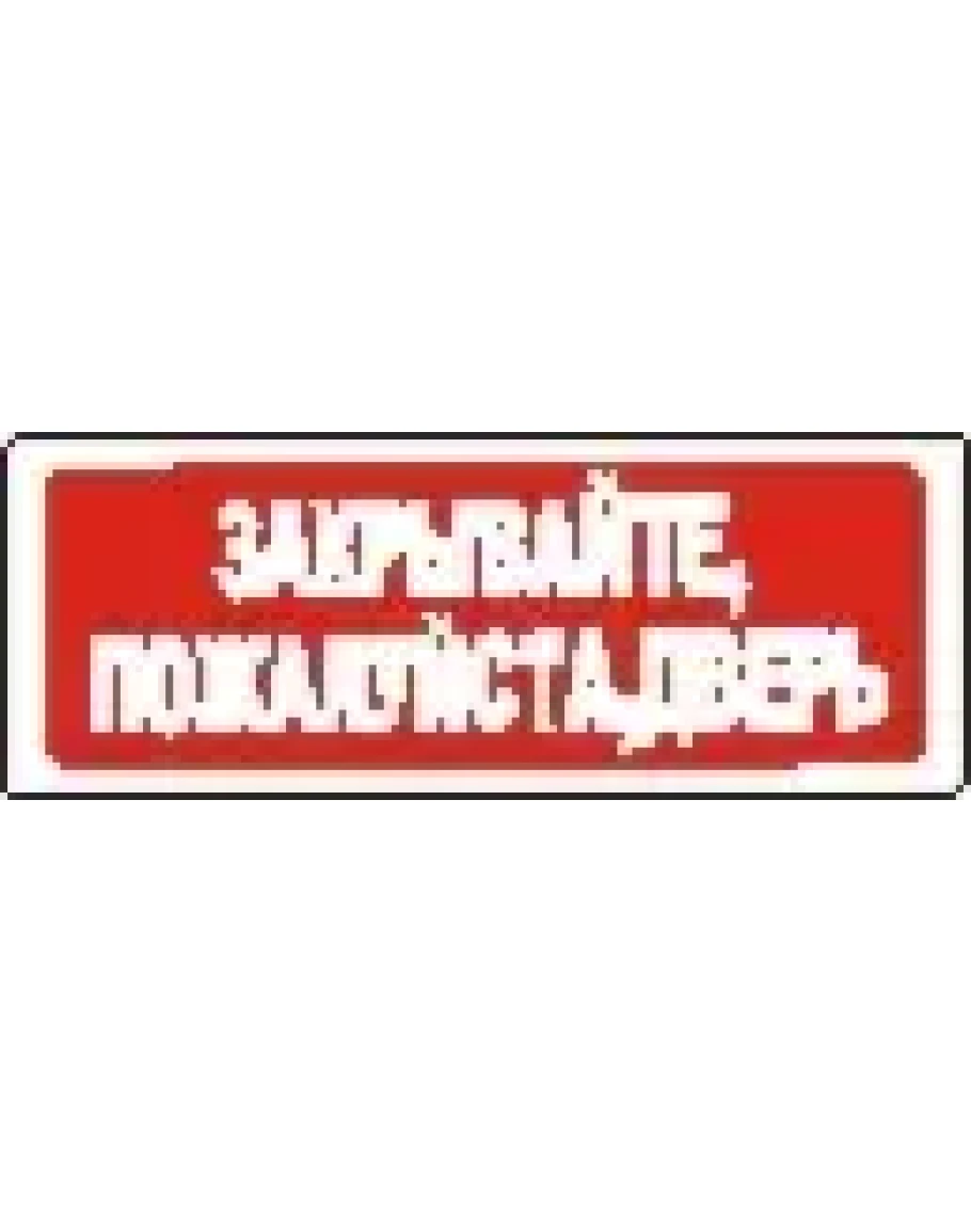 Наклейка. "Закрывайте, пожалуйста, дверь", цветная, размер 8,8х3,3 см, формат .cdr.
