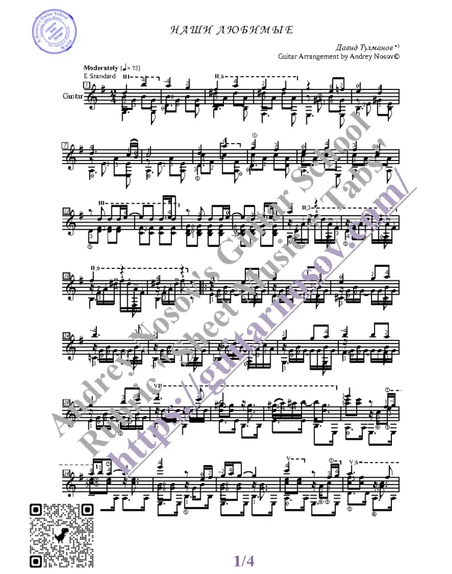 Товар состоит из двух частей (pdf / png*): 1 – Ноты с табулатурой; 2 – Ноты без табулатуры. Прилагается ссылка на скачивание mp3.