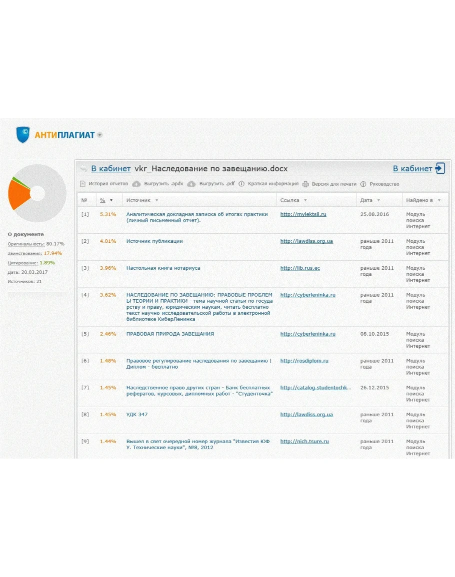 Готовая дипломная работа на тему: Наследование по завещанию выполнена в 2017 году, уникальность (антиплагиат) - 80%.