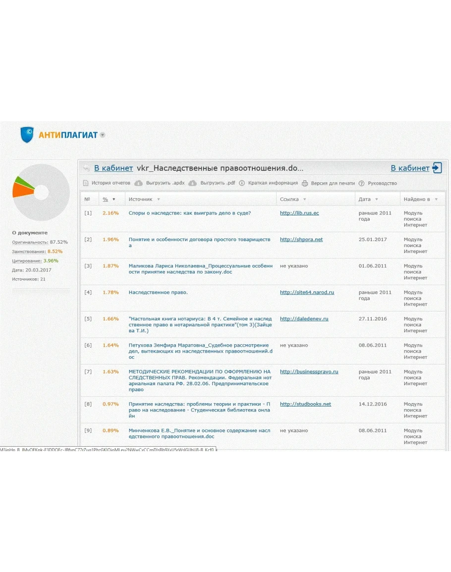 Готовый диплом на тему: Наследственные правоотношения успешно защищен в 2017 году, оригинальность - 87%.