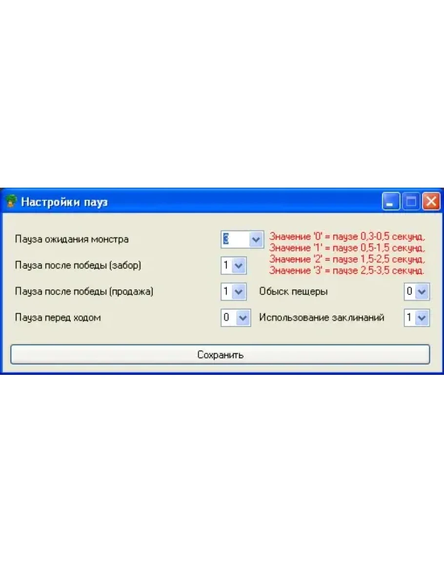 - Возможность выставлять паузы между действиями.