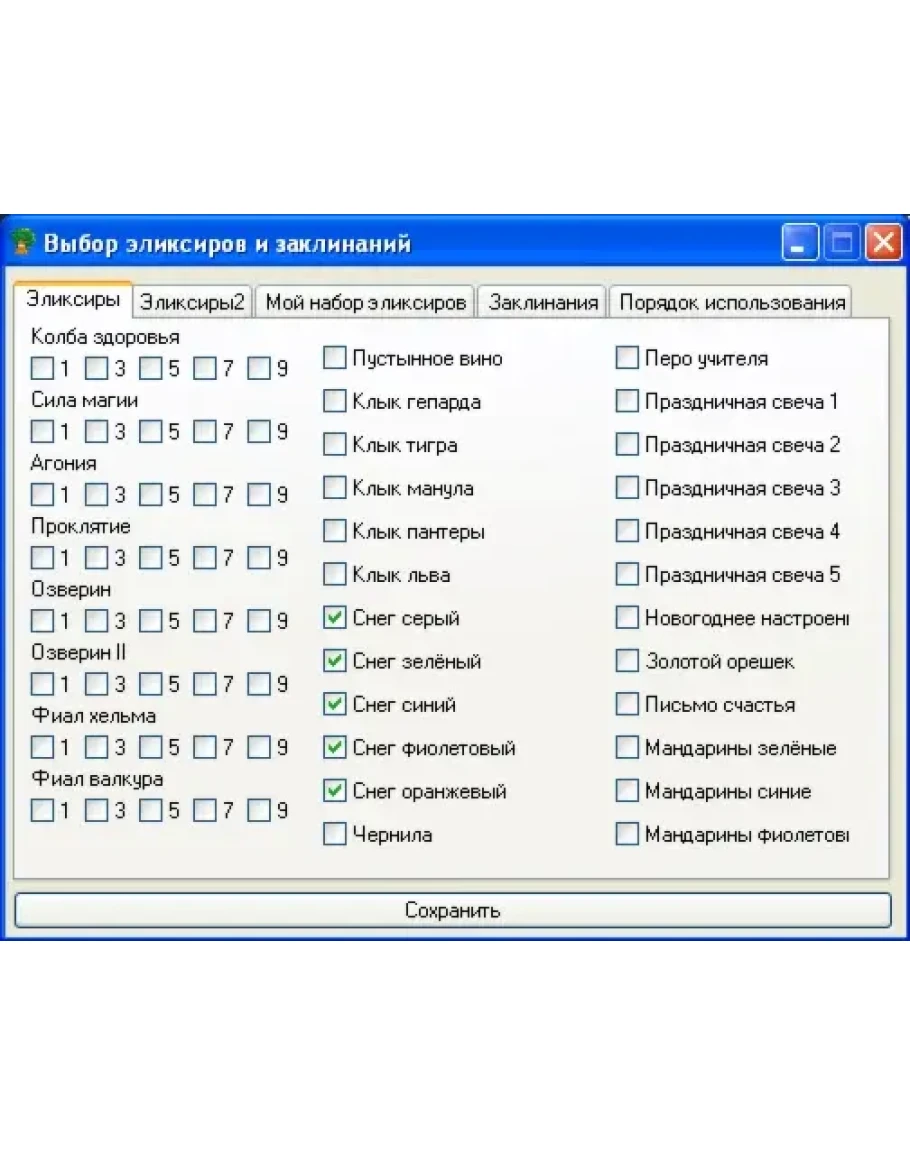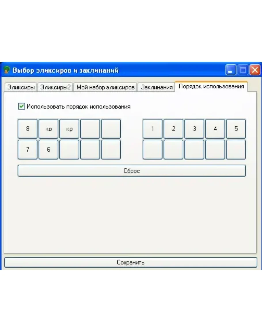 - Возможность настройки очерёдности применения эликсиров и заклинаний в бою.