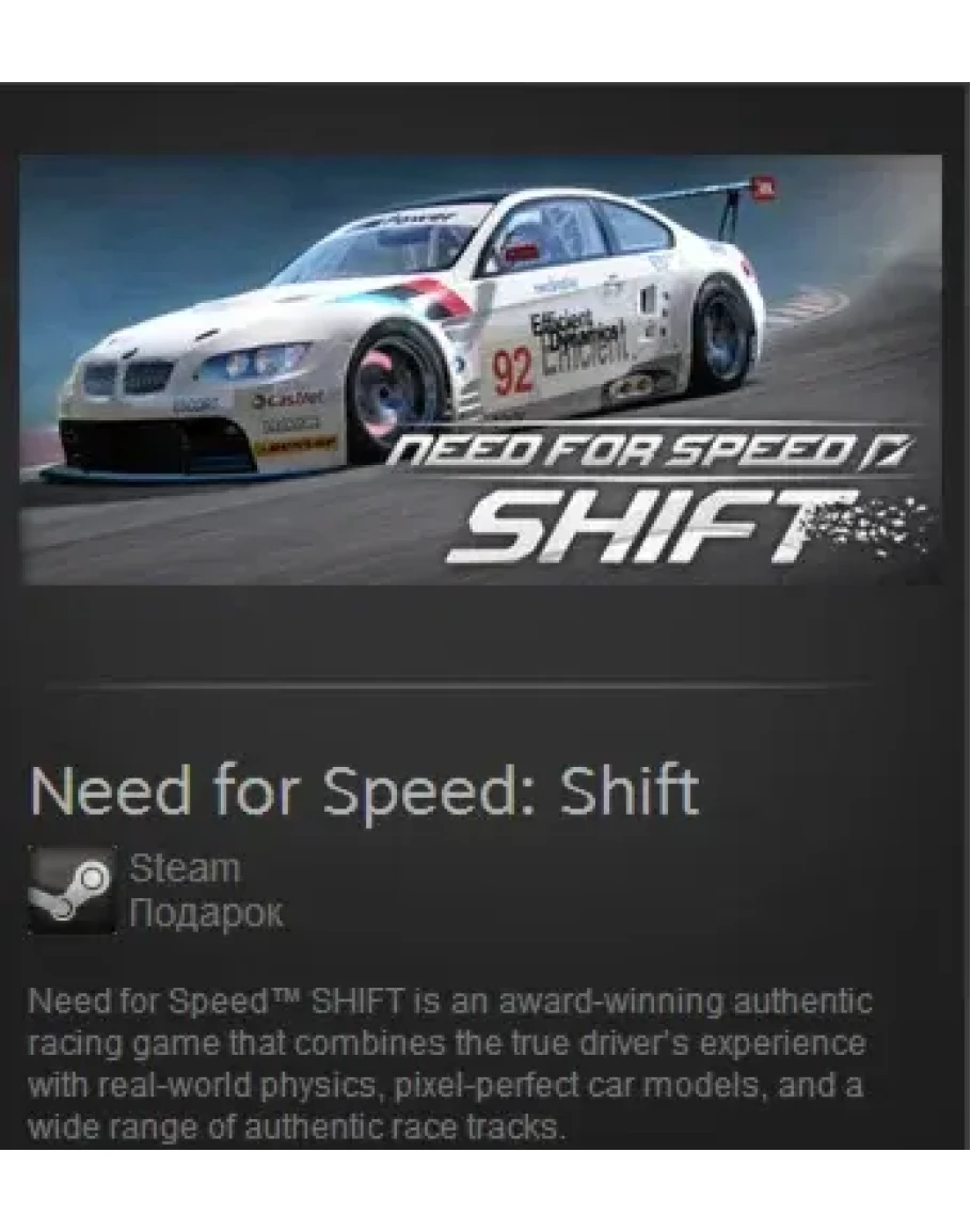 «В Need for Speed SHIFT мы поставили перед собой задачу расширить границы жанра и создать уникальный гоночный проект в сериале Need for Speed, — говорит Патрик Содерлунд, главный вице-президент EA Games Europe. — Мы сфокусировались на вождении с видом от первого лица и можем достоверно передать высокоскоростную динамику и ощущения от управления машиной во время гонки».