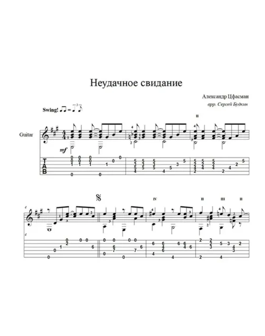 Неудачное свидание (А. Цфасман) ноты для гитары