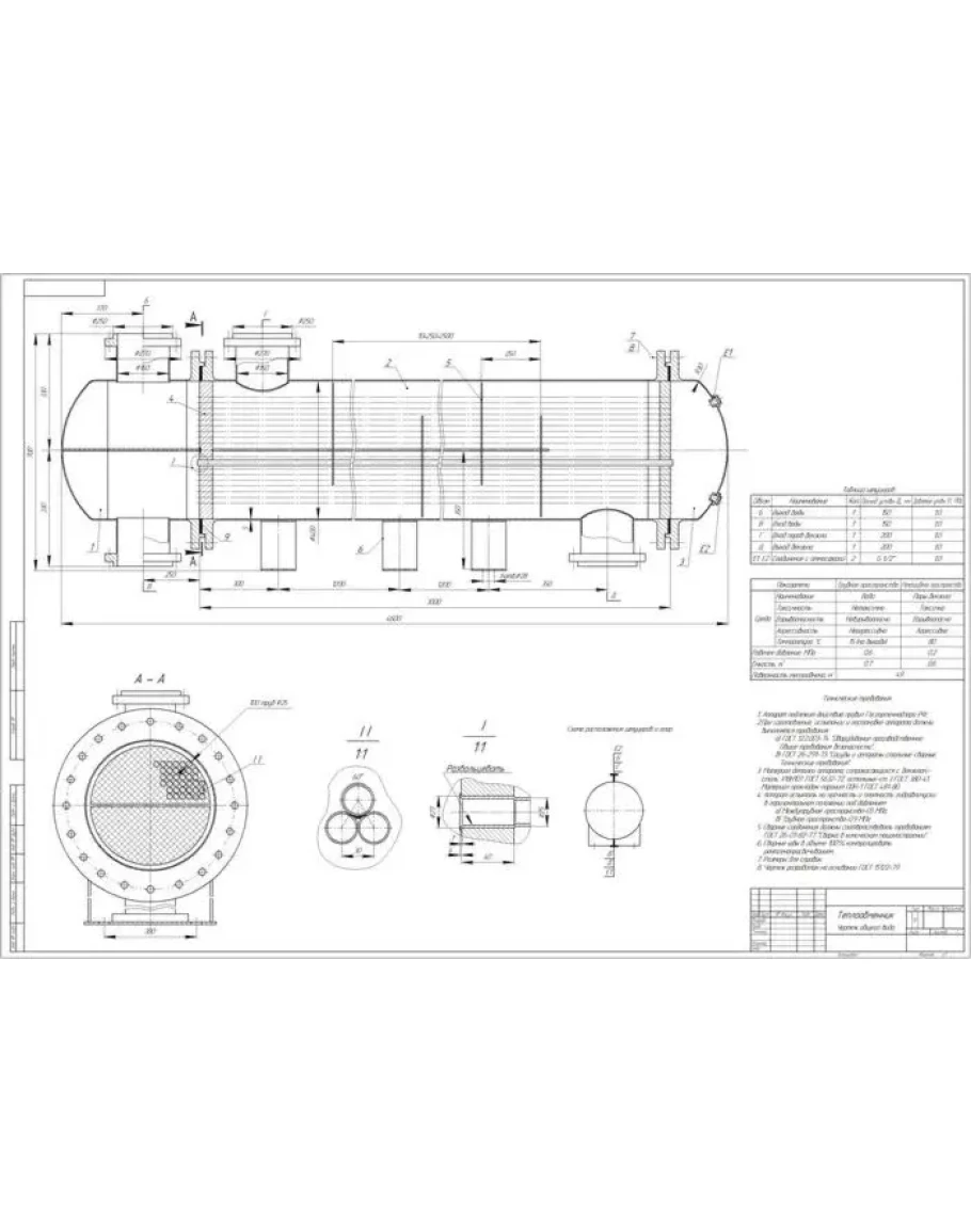 Чертеж "Теплообменник кожухотрубчатый двухходовой"