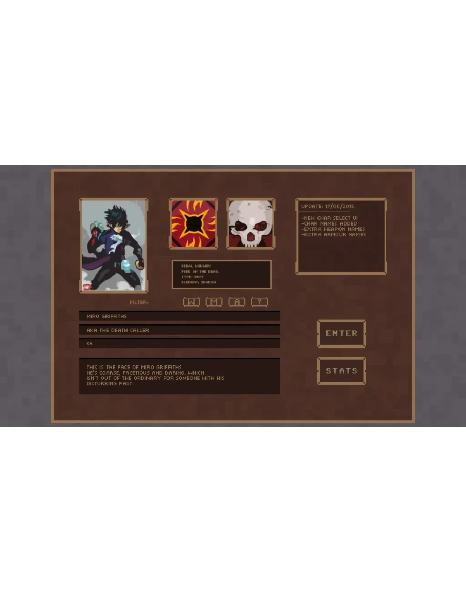 No Turning Back is an indie pixel art randomly generated action rogue-like developed by a new indie developer with tons of player classes, spells, weapons, armour and unlocks!