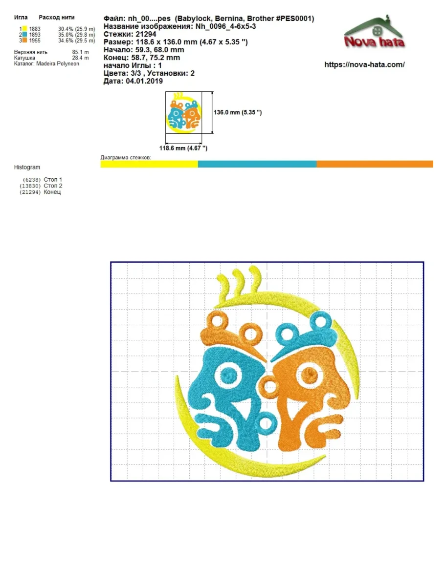 В архиве также содержатся: полное описание файла, цветовая карта нитей.