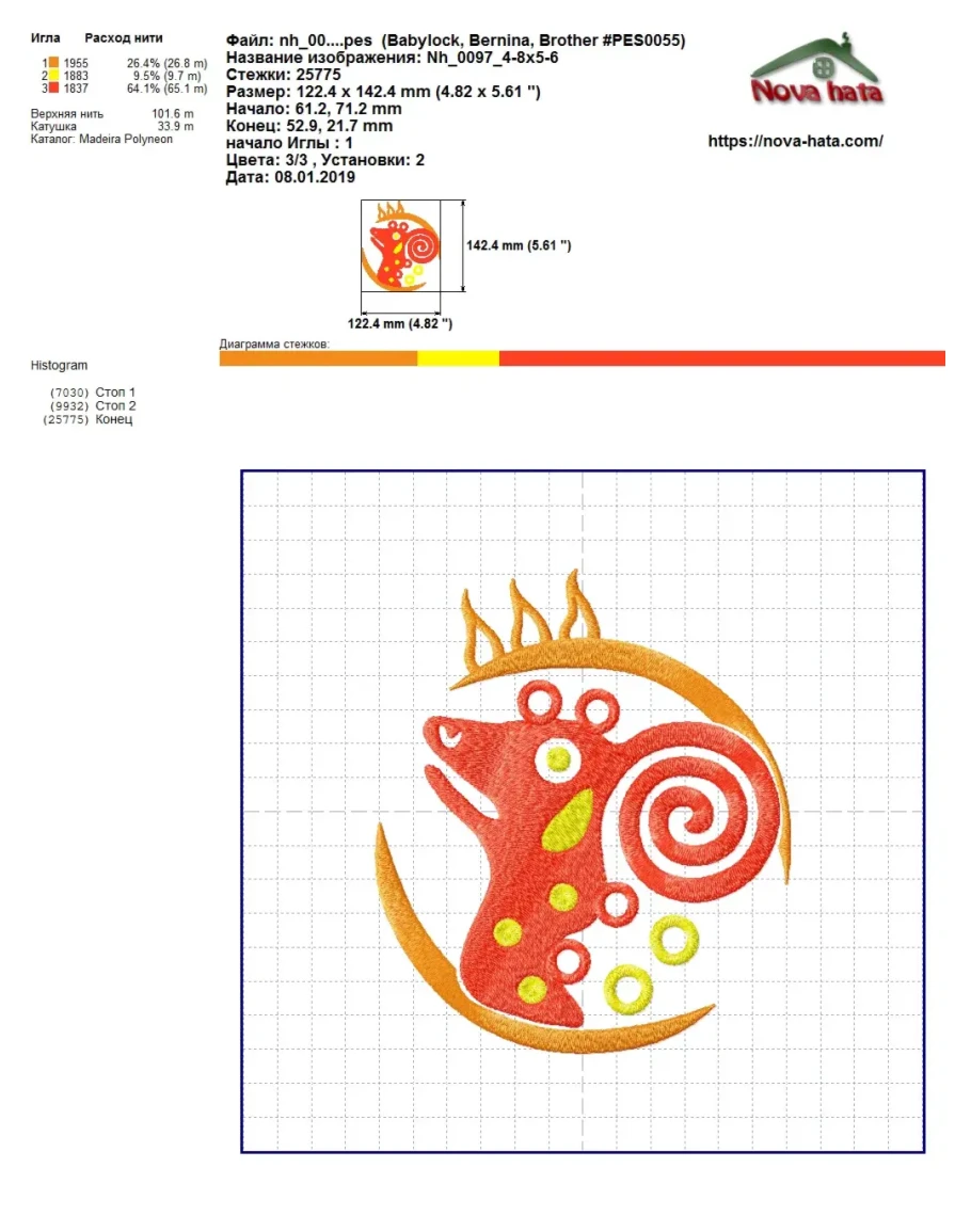В архиве также содержатся: полное описание файла, цветовая карта нитей.