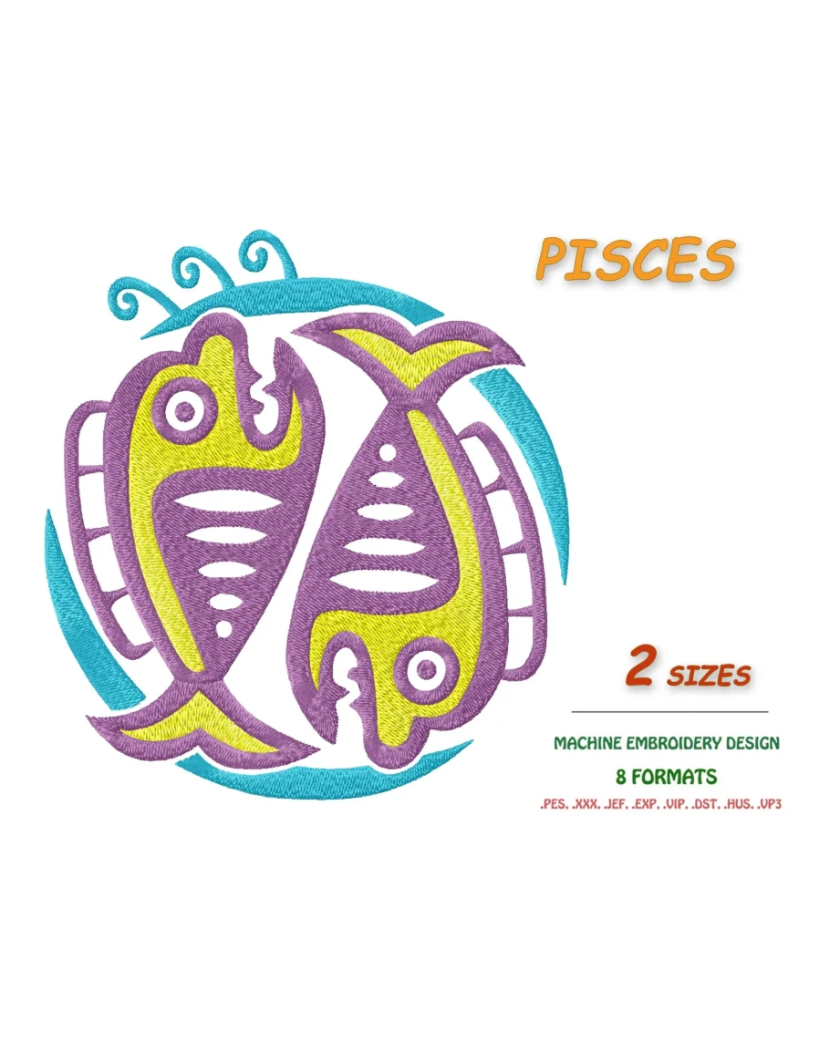 Знак зодиака Рыбы. Дизайн машинной вышивки 2 размера