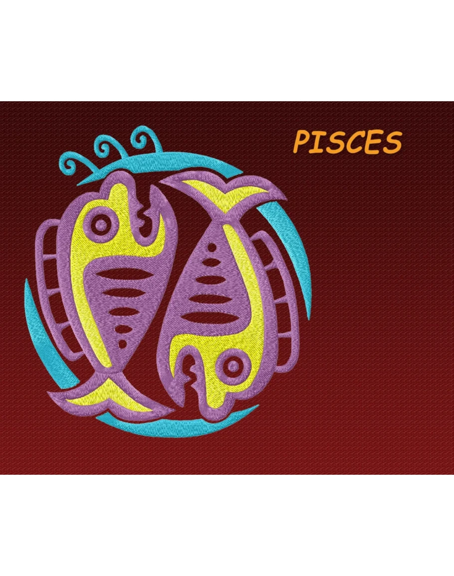 Дизайн для машинной вышивки. Знак зодиака "Рыбы"