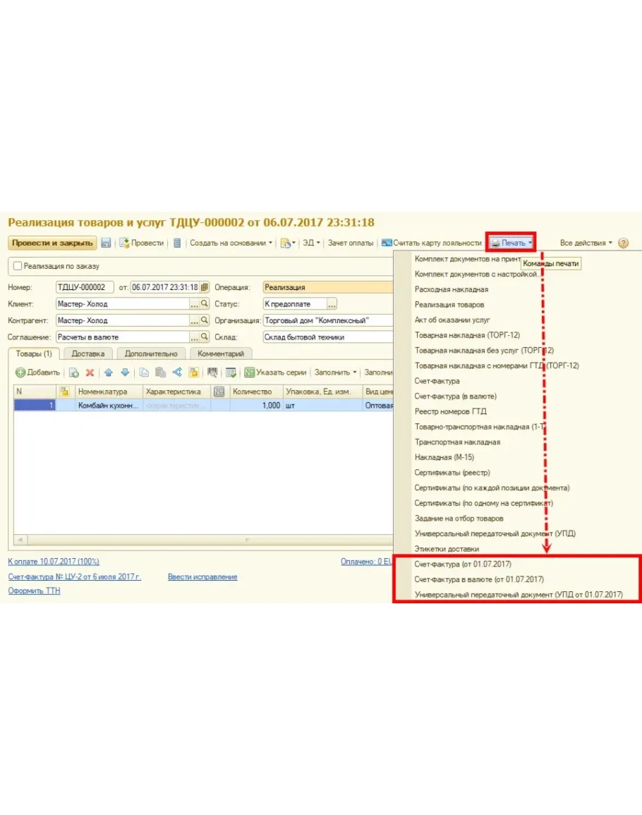 В комплекте печатных форм содержатся формы счета-фактуры, счета-фактуры в валюте, универсального передаточного документа.