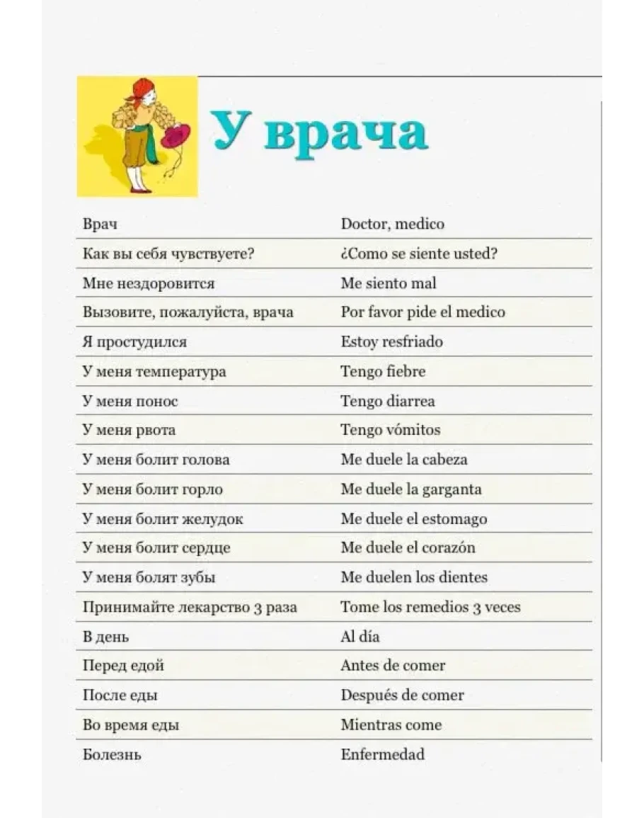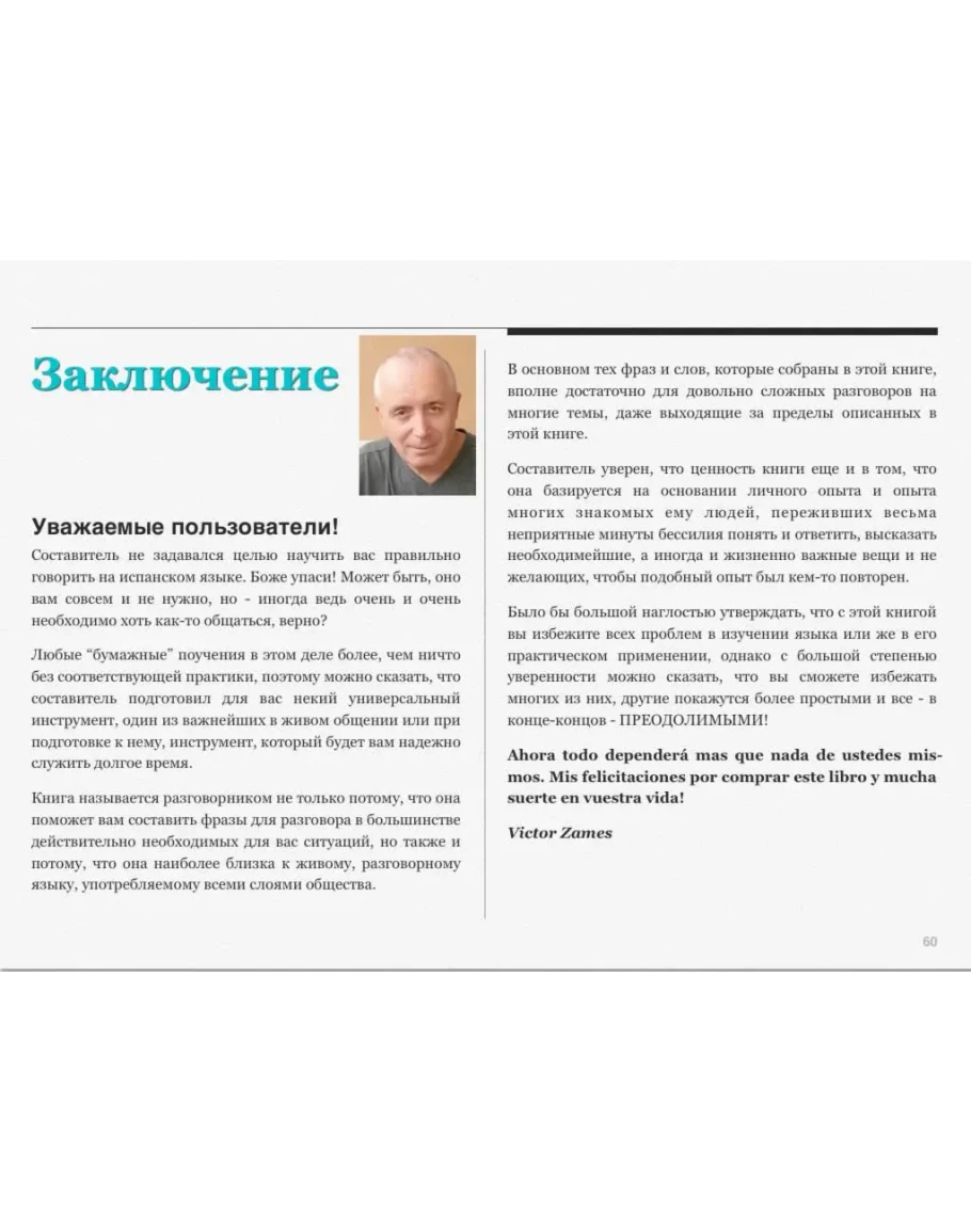 Этот разговорник - универсальный инструмент для всех, кому по делам или на отдыхе придется общаться на испанском языке. Книга составлена на основании опыта общения и предназначена для живого нормального общения, а также как дополнительное средство для изучающих испанский язык.