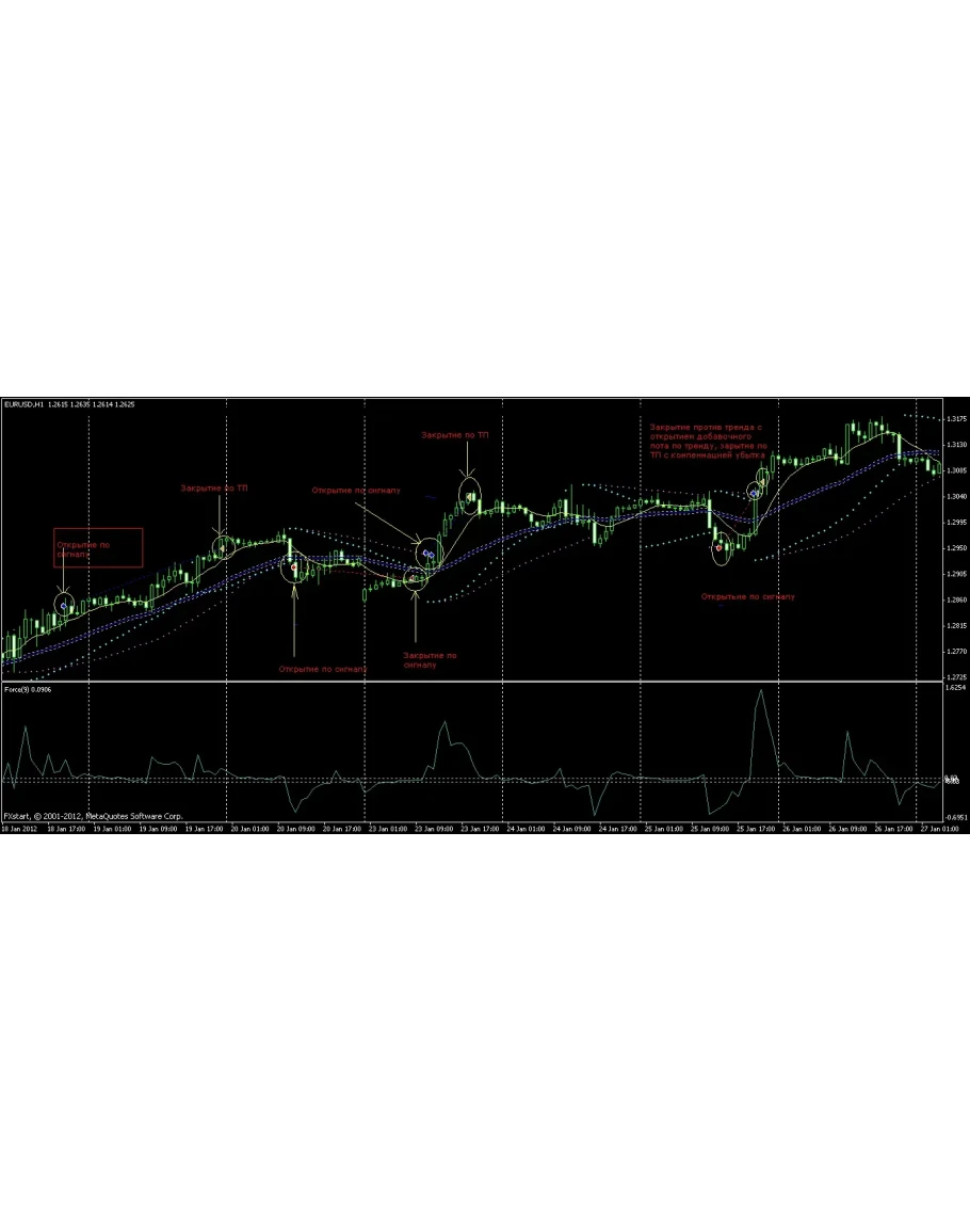 В системе и советнике Profitrade используются 3 технических индикатора, что делают эту систему очень простой в использовании и в применении и в установке в любой терминал Метатрейдер 4. Не требует дополнительных индикаторов! Только встроенные! Рабочий инструмент EUR/USD, таймфрейм Н1..