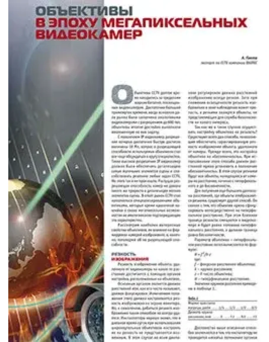 В статье подробно описаны основные параметры объективов, необходимые для построения систем видеонаблюдения высокой четкости. Проведен анализ существующих мегапиксельных объективов на предмет их реальной разрешающей способности. На основе MTF объективов предложен критерий их выбора для видеокамер с различной разрешающей способностью.
