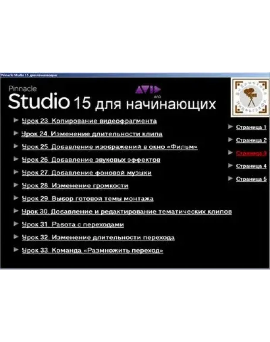 Обучающий видео-курс «Pinnacle Studio 15 для начинающих» представляет из себя удобное видео-руководство пользователя, которое содержит 54 урока по программе Pinnacle Studio 15.