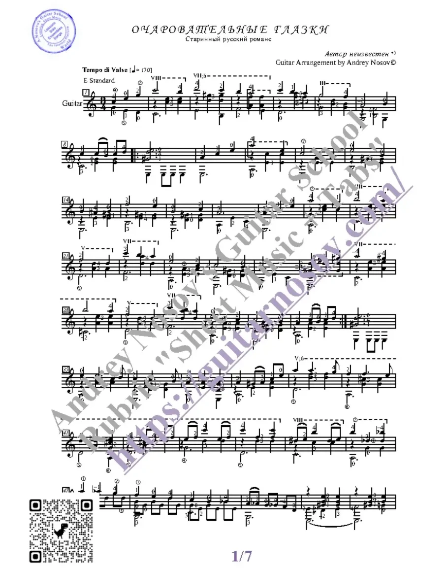 Товар состоит из двух частей (pdf / png*): 1 – Ноты с табулатурой; 2 – Ноты без табулатуры. Прилагается ссылка на скачивание mp3.