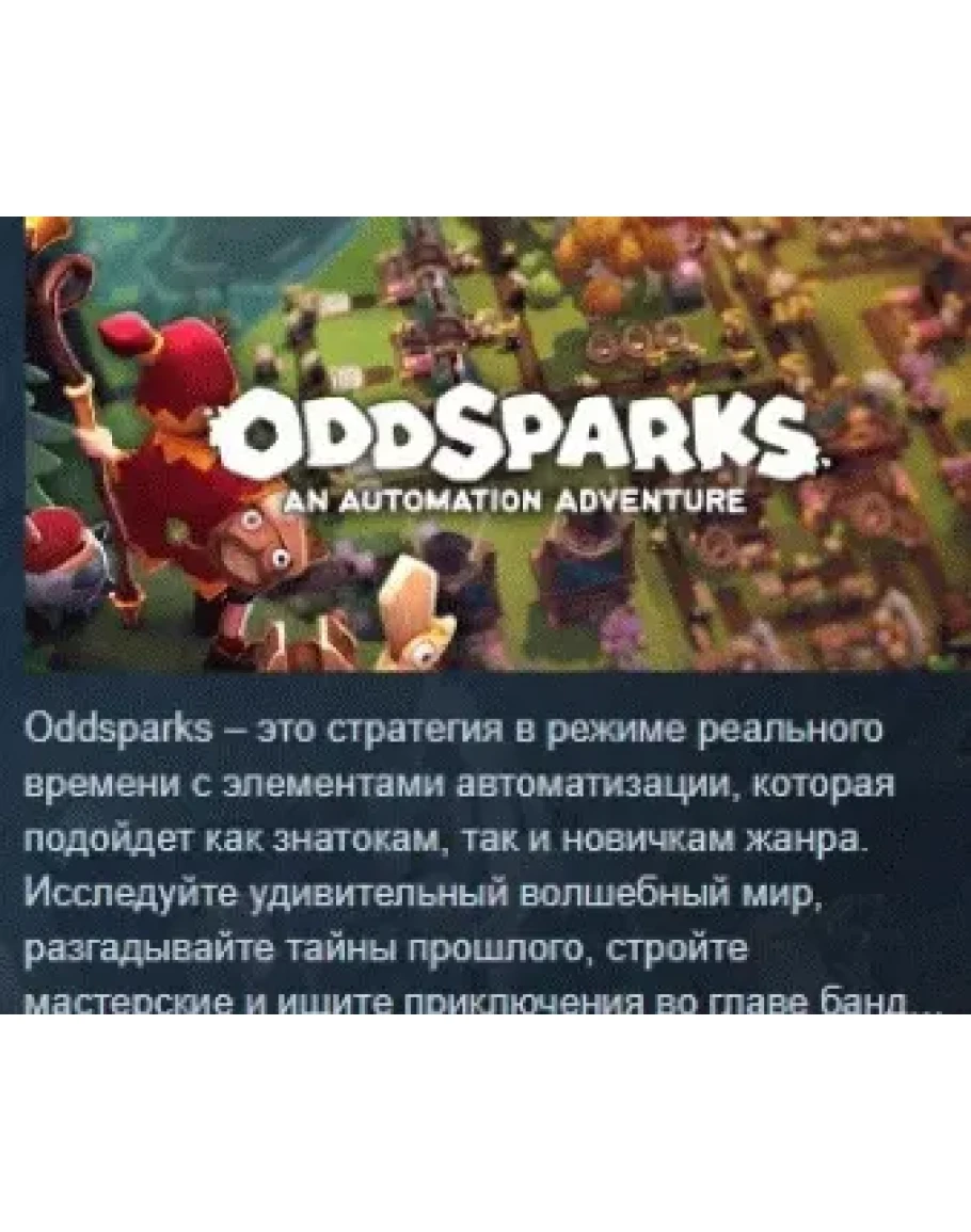 Oddsparks: An Automation Adventure – это стратегия в режиме реального времени с элементами автоматизации, которая подойдет как знатокам, так и новичкам жанра. Исследуйте удивительный волшебный мир, разгадывайте тайны прошлого, стройте мастерские и ищите приключения во главе банды смешных и милых спарков (sparks)!