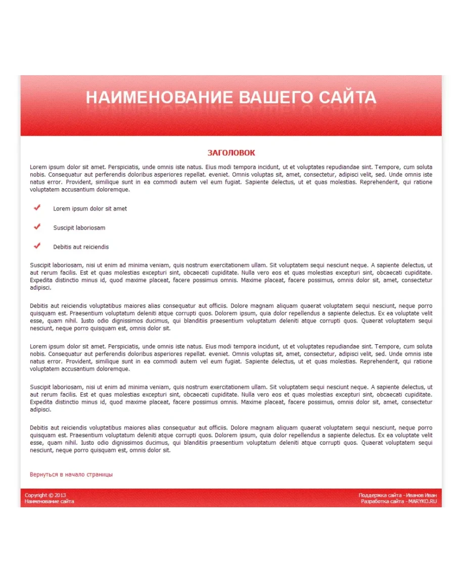 Простой шаблон одностраничного сайта-визитки в стиле WEB 2.0 в красной цветовой гамме