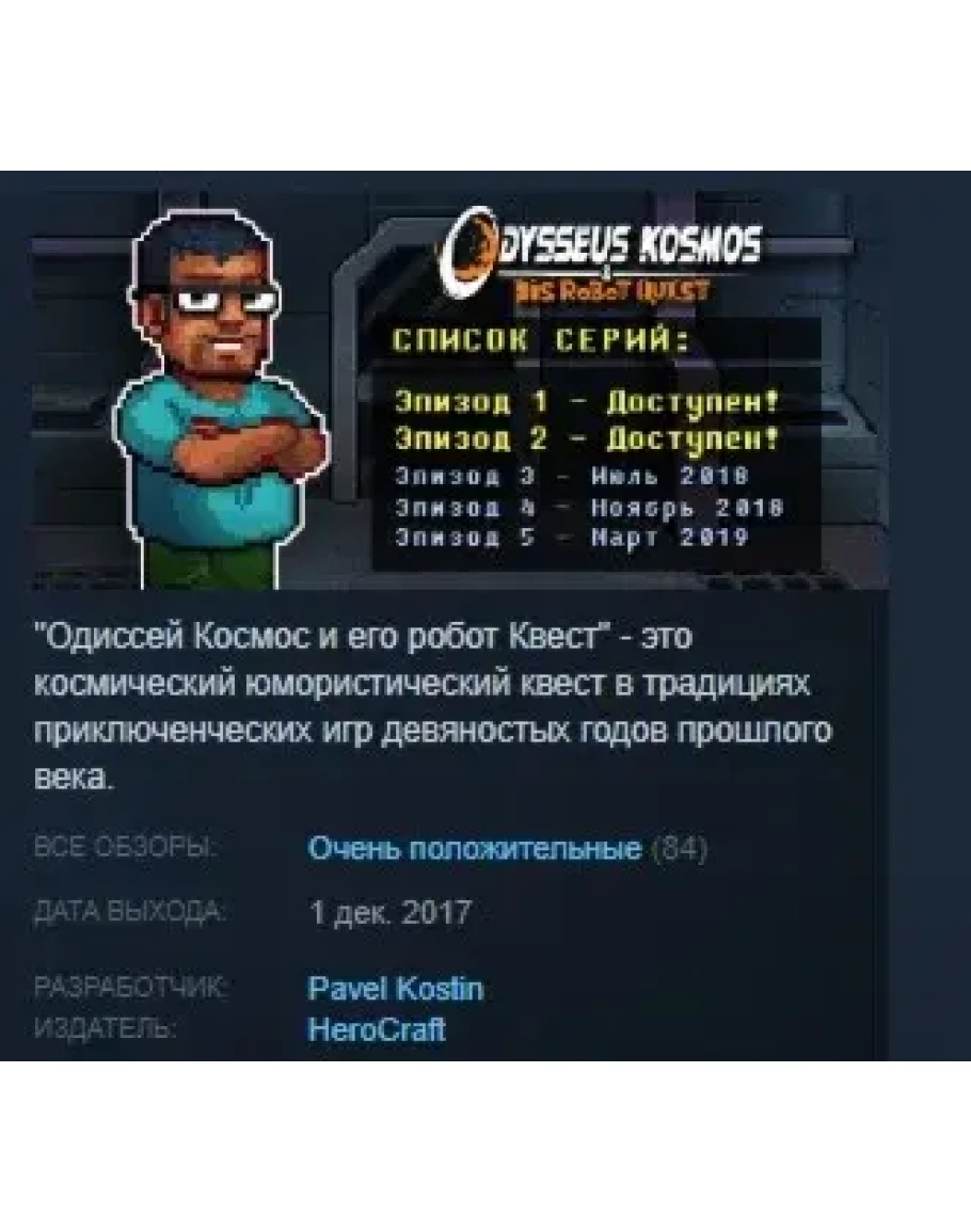 "Одиссей Космос и его робот Квест" - это космический юмористический квест в традициях приключенческих игр девяностых годов прошлого века.