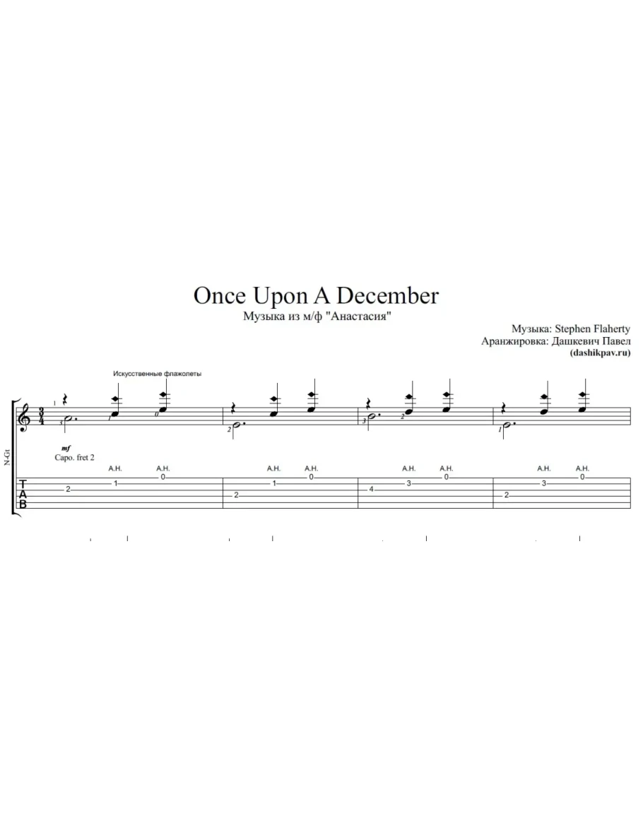 Once Upon A December - ноты и табы для гитары