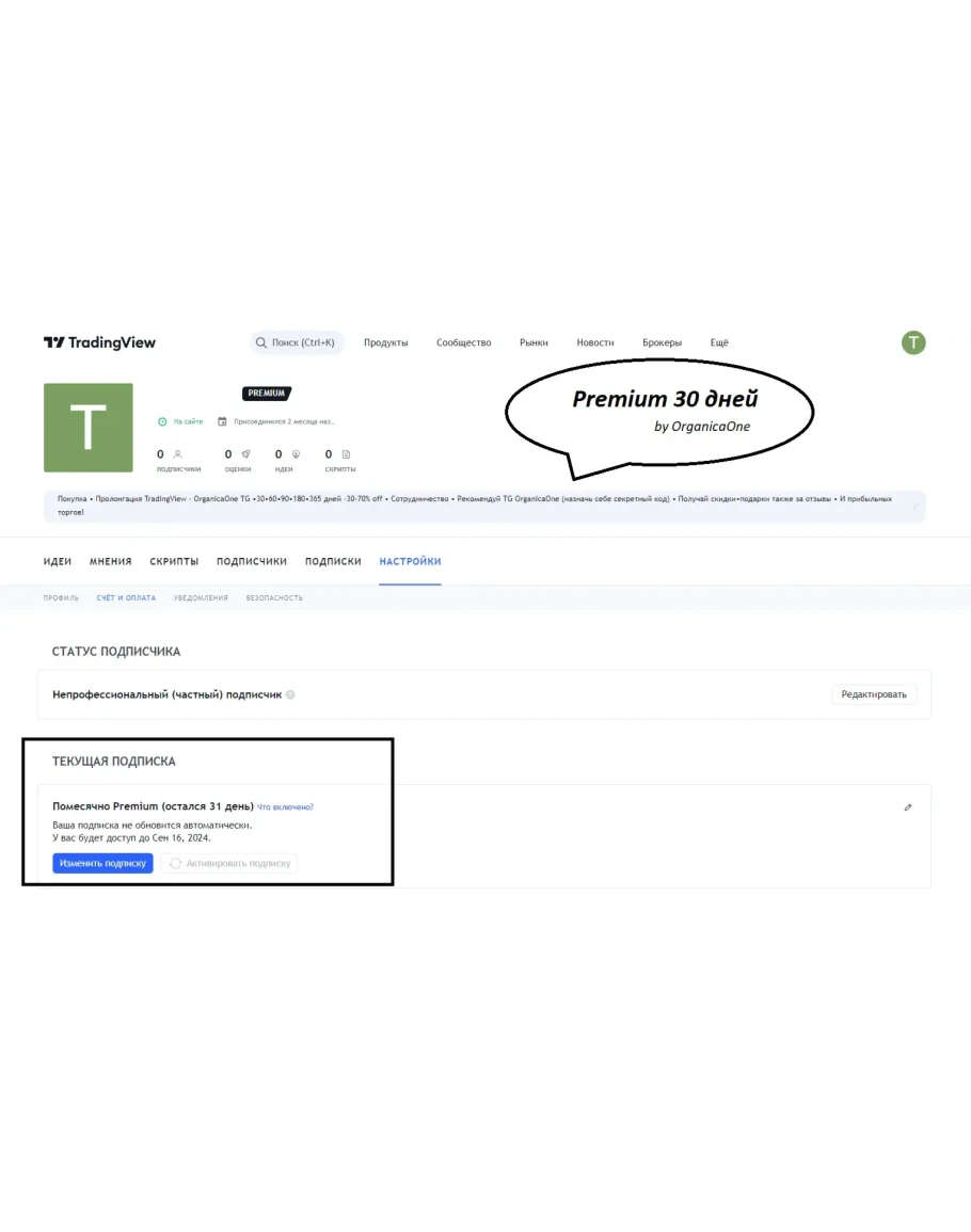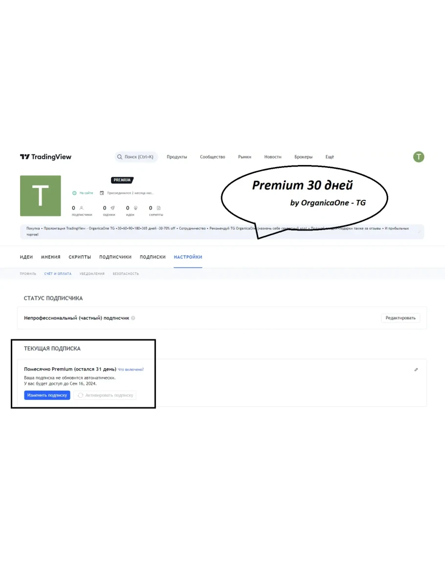 🟢 Подписка/аккаунт TradingView Premium на 1 мес (30 дней)