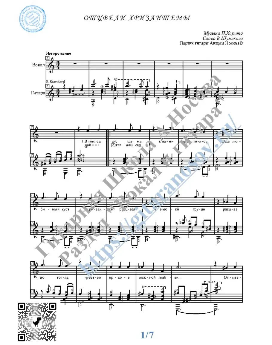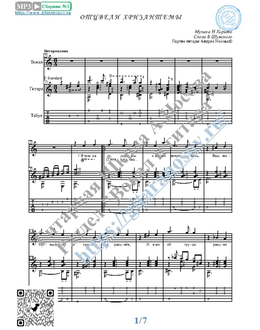 Отцвели хризантемы (Вокал Гитара Ноты Табы)
