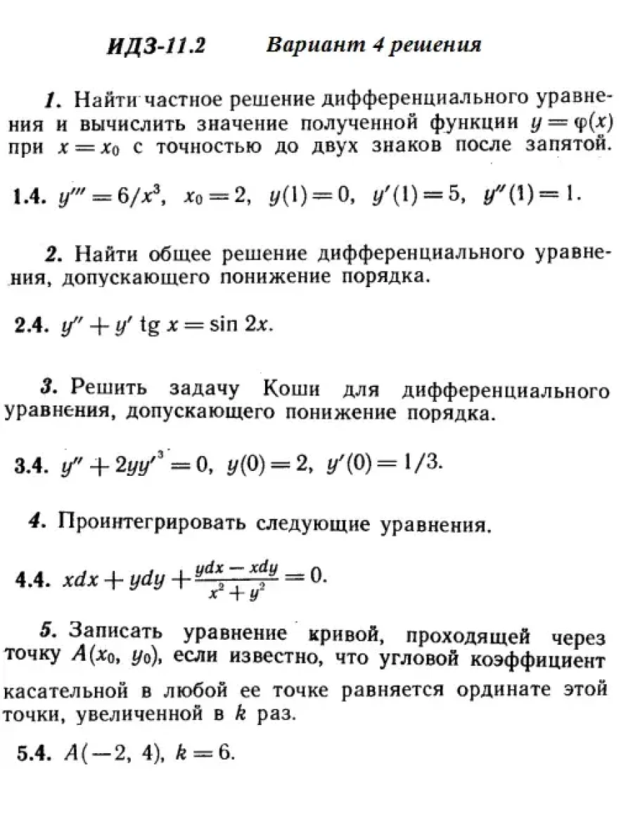 Решения 5-и заданий на дифференциальные уравнения из Рябушко части 2 ИДЗ 11.2 вариант 4