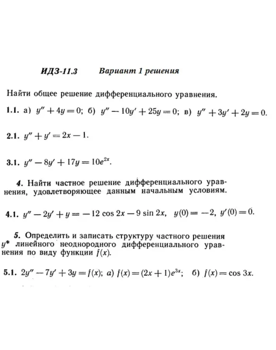 Решения 5-и заданий на дифференциальные уравнения из Рябушко части 2 ИДЗ 11.3 вариант 1