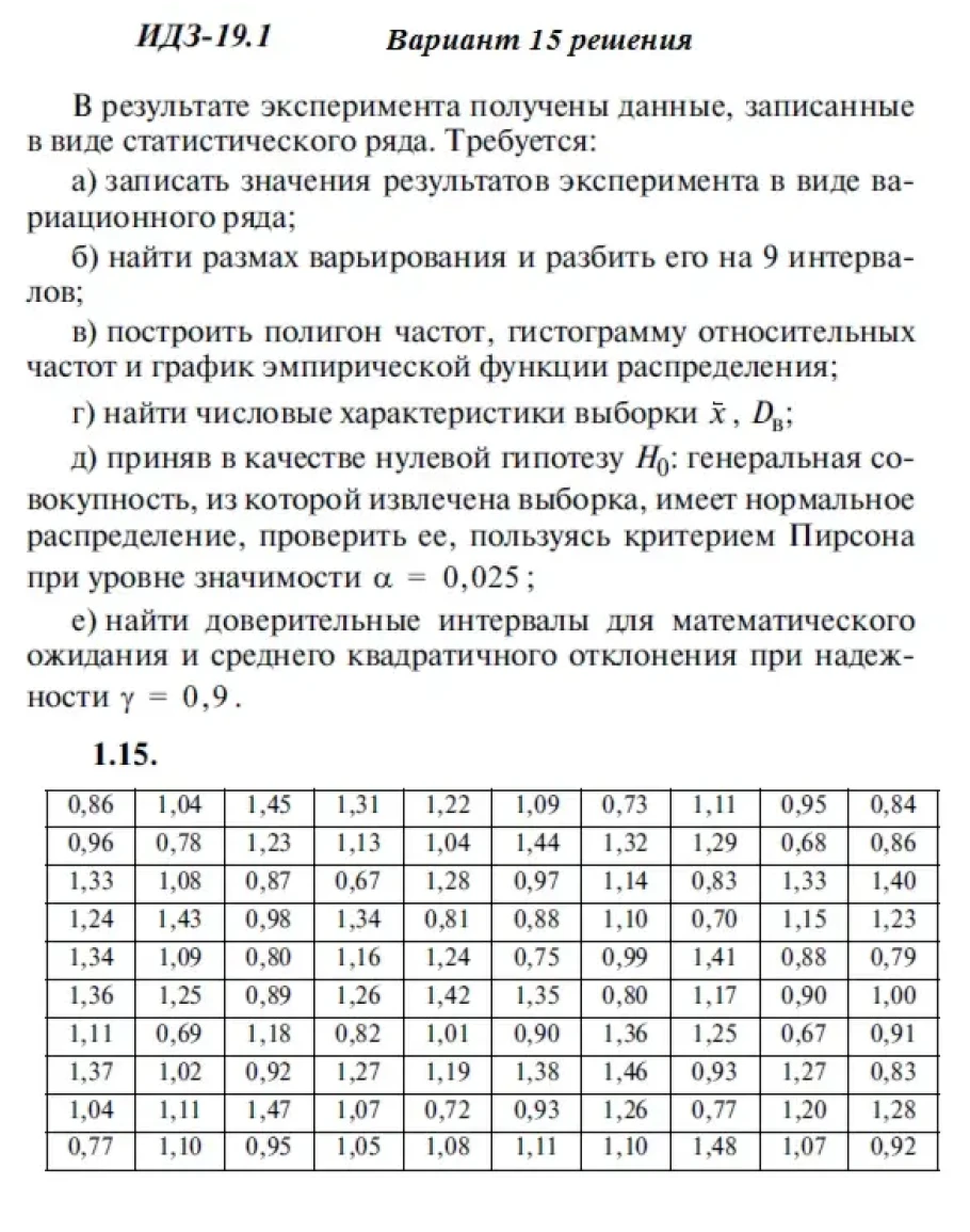 Решения 1 задание по математической статистике из Рябушко части 4 ИДЗ 19.1 вариант 15